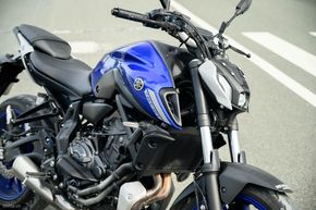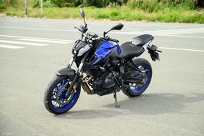 Nhờ vậy, tỷ số công suất/trọng lượng của xe được cải thiện để cho khả năng tăng tốc tốt hơn, đồng thời giúp cho việc điều khiển xe, dắt xe dễ dàng hơn với những người không quá khoẻ. Chiều cao yên của xe đạt 805 mm, và như mình cao 1m68 thì có thể chống chân thoải mái, không hề bị chơi vơi. Khi ngồi lên xe thì tư thế lái của MT-07 khá thoải mái, không bị quá chồm về phía trước. Với chiều dài trục cơ sở đạt 1.400 mm, xe không quá to bự và cồng kềnh.