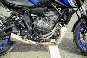 Nếu so với các đối thủ khác, công suất cực đại của động cơ không thật sự vượt trội, nhưng mô-men xoắn cực đại là yếu tố nhỉnh hơn của MT-07. Sức kéo của xe luôn duy trì ở nhiều cấp số và dải tua khác nhau, khi xe đang ở vận tốc tầm hơn 60 km/h, bạn cần thêm 1 chút tốc độ để vượt một chiếc xe nào đó, chỉ cần thêm 1 chút ga là đã động cơ sẽ phản hồi ngay tức khắc và cung cấp co bạn một lực kéo lớn để đẩy bạn về phía trước. Đó thật sự là một cảm xúc rất tuyệt vời mà xe mang lại.