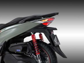 Mặt đồng hồ LCD với vẻ ngoài hiện đại, hiển thị đầy đủ tất cả các thông số và đèn báo họat động SH350i phiên bản 2023 được trang bị lốp xe với kích thước 110/70 R16 ở phía trước và 130/70 R16 ở phía sau. Chi tiết ngàm phanh và hệ giảm xóc (phuộc) trên phiên bản đặc biệt và thể thao được tô điểm thêm màu đỏ đem lại điểm nhấn ấn tượng trong tổng thể thiết kế ở mẫu xe này.