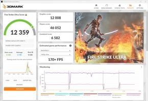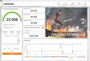 Cái lợi của việc chia khu vực cho CPU và GPU ngoài khả năng tản nhiệt được cải thiện thì còn cho phép gắn card đồ họa dòng cao cấp hơn. Intel NUC 13 Extreme bản thử nghiệm đã gắn sẵn mẫu ASUS TUF Gaming GeForce RTX 3080 Ti OC Edition, chiếm 2.7 khe PCI cùng độ dài 299.9 mm. Khả năng hỗ trợ của thùng máy Raptor Canyon là card đồ họa dày 3 khe PCI, dài tối đa 317.5 mm. Thông số này hoàn toàn cho phép anh em trang bị card đồ họa mạnh nhất hiện tại - NVIDIA GeForce RTX 4090 Founders Edition - cho NUC 13 Extreme. Mình không có hình ảnh cho phần này, tuy nhiên do kích cỡ vừa khít nên nếu muốn lắp đặt, anh em cần tốn 1 chút thời gian để tháo gỡ phần khung thùng máy xung quanh khu vực GPU. Công suất 750 W của bộ nguồn hoàn toàn đủ để trang bị RTX 4090 mà không gặp vấn đề gì. Intel Core i9-13900K được giới hạn ở 250 W PL2 và 160 W PL1 trong BIOS/UEFI, ngoài ra anh em đừng quên là RTX 4090 có thể hạ công suất tiêu thụ nhưng vẫn có hiệu năng không quá khác biệt.