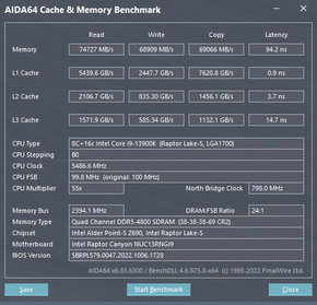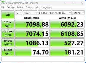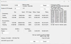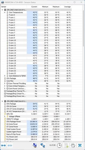 Nhiệt độ CPU là điều đáng ngạc nhiên, nhờ việc BIOS/UEFI giới hạn công suất theo đúng thiết kế của vi xử lý Core i9-13900K, thay vì cho phép thoải mái bung sức như trên hệ thống desktop thông thường. Mình thử nghiệm cho chạy Cinebench R23 trong 10 phút, nhiệt độ tối đa chỉ 93 độ C, điều kiện phòng 30 độ thông thường không có máy lạnh, nếu trang bị thêm quạt 90/92 mm thì sẽ còn mát hơn nữa. Kết quả Cinebench đạt khoảng 35,000 điểm, kém hơn 14% so với lúc thử nghiệm Core i9-13900K trước đây (~40,000 điểm) nhưng đó là khi mở khóa toàn bộ công suất. Cách biệt hiệu năng thể hiện qua điểm số các phép thử dao động trong khoảng 8% đến 20% so với thử nghiệm Core i9-13900K lúc mới ra mắt.