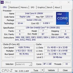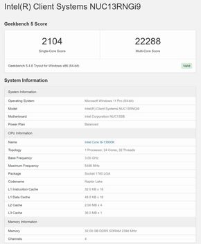 NUC 13 Extreme "Raptor Canyon" này là sản phẩm thử nghiệm, do đó Intel gắn CPU Core i9-13900K bản ES (Engineering Sample), về lý thuyết nó sẽ không có khác biệt gì so với bản thương mại.