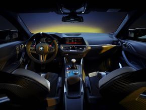 BƯớc vào bên trong, nội thất của xe tạo cảm giác quen thuộc bởi nó vẫn mang ngôn ngữ thiết kế của BMW trong thời gian gần đây. Tuy nhiên chắc chắn là sẽ có một vài yếu tố để là nơi sự khác biệt của dòng xe kỷ niệm này. Chúng ta nhìn thấy cần số với phần đầu màu trắng có khắc số 50, các mảng ốp bằng sợi carbon, hàng ghế sau bị loại bỏ. Ngoài việc lượt bớt đi các thành phần cách âm để giảm khối lượng, may là BMW vẫn giữ cho xe hệ thống điều hòa hay màn hình cảm ứng dành cho hệ thống thông tin giải trí.