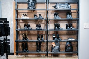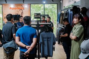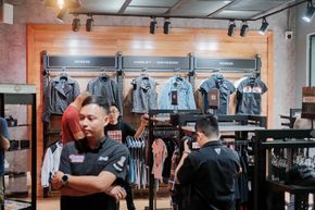 Đi lên tầng 1 sẽ là khu trưng bày quần áo. Ở đây có quần áo thời trang, áo thun, áo sơ mi, kính mát hay giày dép, nón cho anh em lựa chọn.