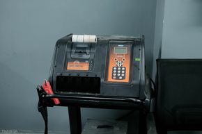 Có tổng cộng 5 bàn nâng hoạt động cùng lúc. Mình thấy quá trình kiểm tra xe cũng rất kỹ lưỡng. Anh này cầm đèn pin soi vào các chi tiết máy.