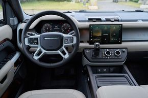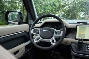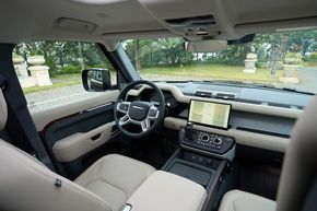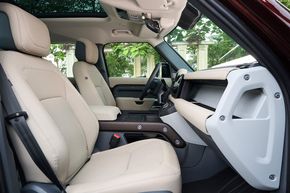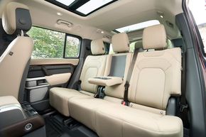 Hành khách ngồi hàng ghế thứ hai và thứ ba có vị trí ngồi cao hơn. Việc bước vào hàng ghế thứ ba rất dễ dàng, nhờ hàng ghế thứ hai có thể trượt và gập về phía trước để mở ra lối vào rộng rãi. Từ cửa khoang hành lý, người dùng có thể hạ Hệ thống Treo Khí nén Điện tử của Defender thông qua các nút bấm trong khoang hành lý để trợ giúp việc cất giữ đồ đạc phía sau.