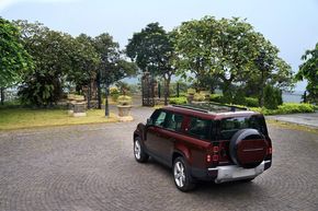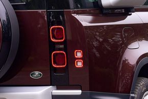 Để duy trì thiết kế phía sau đặc biệt của Defender, các kỹ sư của Land Rover đã chế tạo phần đuôi xe nhô cao và vuốt gọn kiểu du thuyền tinh tế nhằm tối đa hóa khả năng vượt địa hình với góc thoát lên tới 28,5 độ. Viền xung quanh bộ đèn hậu LED đã được thiết kế lại để duy trì ba đường thiết kế đặc trưng tạo nên phần thân xe Defender vuốt cao về phía sau.
