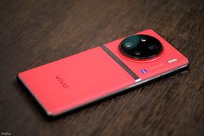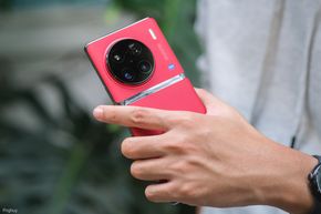 Lớp da ở mặt lưng thiết bị có màu đỏ rất nổi bật kèm với cụm camera siêu to, màu đỏ sẽ hợp với màu của năm mới. Mình không rõ chất da của vivo X90 Pro là da thật hay da công nghiệp nhưng cảm giác cầm nắm là thân thiện. Cụm camera siêu to của X90 Pro nó không nằm ở chính giữa mà sẽ lệch sang bên trái một chút, nếu anh em thích sự hoàn hảo trong từng chi tiết thì sẽ cảm thấy khó chịu với điều này, cá nhân mình cũng vậy.
