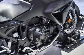 Lốp xe có kích thước 120/70R17 phía trước và 180/55R17 phía sau. Chiều dài cơ sở 1.535mm, khoảng sáng gầm xe là 175mm. Trọng lượng không tải của phiên bản côn tay là 238kg, còn bản DCT là 248kg. Khối lượng này sẽ làm khó những anh em có thể trạng khiêm tốn như mình, nhưng chiều cao yên 820 mm của xe cũng không thật sự lớn và một người cao 1m68 như mình có thể chống chân được.