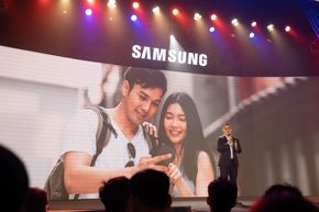Khach mời được trải nghiệm thử thách đấu Liên Quân Mobile trực tiếp tại sự kiện với Galaxy A34 và A54 5G.