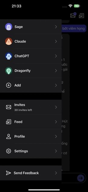 Sau khi hoàn tất đăng ký, bạn đi vào bên trong và từ cột bên trái, có thể chọn một loạt các chatbot AI khác nhau, từ chatGPT cho tới Sage, Claude và Dragonfly. Cả Sage và Dragonfly đều được cung cấp bởi OpenAI trong khi Claude thì của công ty Anthropic. Mỗi 1 cái đều có hạn chế riêng, anh em chat nhiều với nó sẽ rõ.