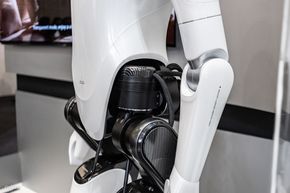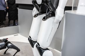 So với các droid mình từng thấy trước đây qua phim ảnh, bản vẽ thì CyberOne thuộc hàng đẹp trai, đầu hơi nhỏ, không có tóc… Các khớp vận động chủ yếu thấy ở hông, đầu gối, gót chân… nói chung nhìn cho vui thôi chứ không thấy sẽ cử động được gì nhiều nếu chỉ có các khớp này. Xiaomi cũng chỉ trưng bản mẫu thôi chứ không di chuyển hay làm gì được.