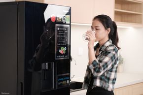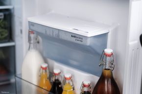 Khay chứa nước dung tích lớn 3L được làm bằng vật liệu kháng khuẩn không chứa BPA cùng bộ lọc khử mùi carbon. Người dùng có thể tiện loại lấy nước lạnh từ bên ngoài mà không cần mở cửa tủ.