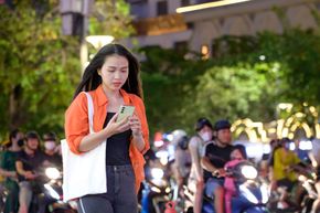 Một anh xe ôm công nghệ đang tìm đường đến nơi đón khách.