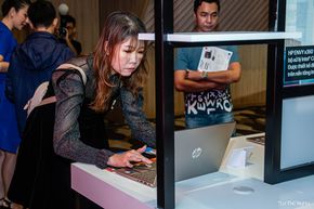 HP kết hợp trải nghiệm tính năng sản phẩm với những mini game thú vị, chẳng hạn như trả lời câu hỏi bằng cách viết lên màn hình cảm ứng với bút đi kèm HP Pavilion x360...