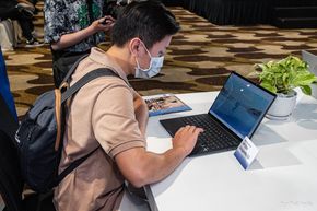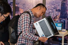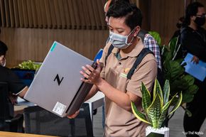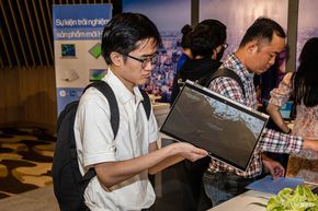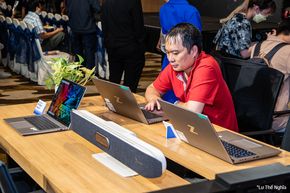 Trước khi đại diện HP chia sẻ nội dung về sản phẩm của hãng trên sân khấu, rất đông người tham dự đã sử dụng thử và trao đổi, chia sẻ các tính năng cùng nhau. Không chỉ khu vực gaming mà cả khu vực dành cho văn phòng, doanh nghiệp cũng được chú ý.