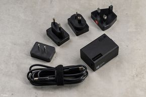 Bộ phụ kiện Lenovo Go trong bài này của mình bao gồm chuột công thái học, bàn phím công thái học, một chiếc chuột USB-C, một cục pin dự phòng và một chiếc sạc với các đầu chuyển phục vụ cho mục đích du lịch.