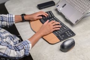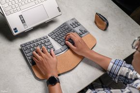 Bàn phím công thái học của Lenovo có thiết kế để người dùng có thể thoải mái nhất có thể, theo Lenovo gọi là "Human-inspired" chứng tỏ họ có nghiên cứu kĩ lưỡng. Bàn phím sẽ có những góc nghiêng nhất định để khi chúng ta đặt tay lên gõ sẽ cảm thấy thân thiện nhất. Đầu tiên là chia đôi layout truyền thống của bàn phím thông thường, tạo một góc hình chữ V 13 độ.