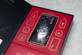 Điểm nhấn của Redmi Note 12 Turbo - Harry Potter còn đến từ chiếc hộp với thiết kế dạng quyển sách phép thuật. Chiếc hộp này có thể làm vật trang trí trên kệ sách, sau khi lấy máy ra dùng. Biểu tượng trường Hogwarts hiện diện ở cả trong, ngoài hộp lẫn mặt lưng máy. Mặt sau hộp có 4 biểu tượng của các nhà Gryffindor, Slytherin, Hufflepuff và Ravenclaw.