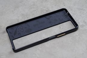 Bên trong được tặng kèm 1 ốp lưng với 1 phần giả da và bên còn lại rỗng. Mặt trong của ốp lưng được bọc nhung và in nhiều biểu tượng.