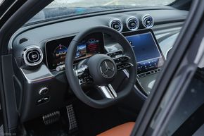 Nếu GLC 200 4MATIC hướng đến không gian nội thất thiên về sự thanh lịch sang trọng, thì phiên bản GLC 300 4MATIC lại mang theo trải nghiệm đậm chất thể thao và năng động hơn. Phiên bản cao cấp nhất của GLC thế hệ mới sở hữu gói nội thất thể thao AMG cùng vô lăng 3 chấu thiết kế bọc da nappa cao cấp, bề mặt táp-lô & viền cửa sổ bọc da ARTICO.