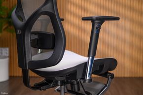 Trên cùng sẽ là phần tựa đầu, Manson gọi là tựa đầu 2D vì anh em có thể điều chỉnh độ cao cũng như độ ngẩng của phần tựa đầu này, điều chỉnh đúng nó sẽ giúp giảm áp lực của phần đầu lên vai và cổ của chúng ta, đề trong một thời gian dài sử dụng chúng ta sẽ không bị mỏi cổ. Quan trọng nhất là nếu thiết lập hết tất cả, chúng ta sẽ có dáng ngồi thẳng và đúng, giúp bảo vệ các bộ phận khác nhau trên cơ thể.