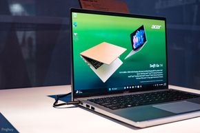 Gian hàng của Acer là một môi trường "xanh" với các mảng xanh khắp nơi, nói lên tính bảo vệ môi trường của hãng và hãng cũng muốn lan toả điều này đến những người khác, điển hình là qua Swift Go 14.
