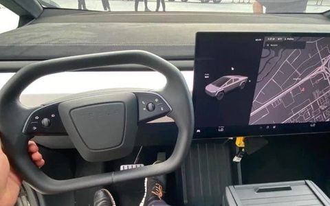 Điểm đáng chú ý đầu tiên đó là vô lăng xe được làm khá vuông vức, như 1 hình chữ nhật được vác ở 4 góc thay vì kiểu hình tròn truyền thống. Thật ra, 1 dòng xe khác của Tesla cũng có thiết kế vô lăng khác biệt thế này đó là chiếc Model S Plaid. Thay vì sử dụng lẫy nằm ngay sau vô lăng để chỉnh các chức năng như xi nhan hay gạt mưa, Tesla quyết định để nó lên luôn các nút điều khiển trên vô lăng.