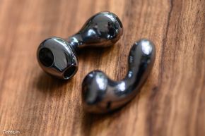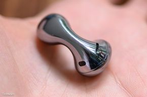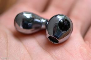 Hai tai nghe có kiểu dáng độc đáo, khác lạ so với các tai nghe TW trên thị trường. Nó có dạng vòng cung như kiểu điện thoại bàn với các đường nét bo cong mềm mại.