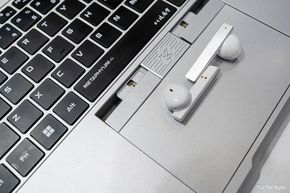 Khi anh em nhấn nút ở giữa, ngàm sẽ bật lên để lộ cặp tai nghe không dây, muốn đóng lại thì nhấn vào 2 bên.