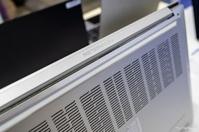 Thay vì khe lấy gió ở mặt dưới bằng phẳng vuông vức như bình thường thì Emdoor cách điệu 1 chút, thêm vào đó các đường cong lạ mắt hơn. Vị trí loa tích hợp không chỉ ở 2 bên bàn phím mà còn ở 2 góc cạnh dưới máy, phía người dùng.