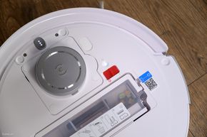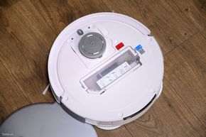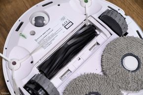 Sẵn nói về ngoại hình thì ngay phía dưới nắp của robot là vị trí để anh em có thể nhìn thấy khoang chứa bụi của nó, cũng khá nhỏ. Và tại đây cũng là vị trí có nút bấm để anh em kết nối với điện thoại ở lần đầu thiết lập.