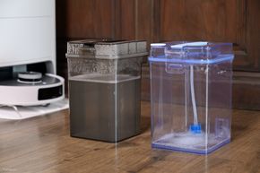 Bên trong trạm sẽ có 2 bình chứa, 1 chứa nước sạch và 1 bên chứa nước bẩn. Quy tắc là nước sạch sau khi dùng hết thì sẽ chui qua hết bên bình chứa nước bẩn. Mình cho robot vệ sinh nhà 3 ngày liên tục, cứ mỗi lần ra khỏi nhà là mình cho nó chạy 1 lần. Sau 3 ngày thì nước sạch gần hết và lúc này thì anh em cần đi đổ nước dơ đi, đồng thời cũng bơm lại nước sạch. Nếu để hết nước thì ứng dụng sẽ báo nên anh em cũng không cần phải để ý hay quan tâm đến mực nước liên tục.