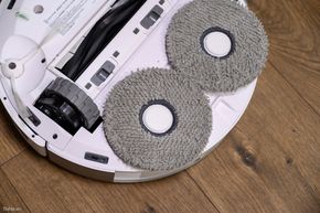 Phục vụ cho chức năng lau nhà chắc chắn là 2 giẻ lau tròn kích thước lớn được đặt nằm bên dưới máy. Chúng tạo lực ép xuống mặt sàn 6 Newton, quay ngược nhau với tốc độ 180 vòng/phút để mô phỏng động tác lau nhà của con người. Về mặt tính năng, Deebot T20 Omni có 1 tính năng thông minh khi lau đó là lúc phát hiện đi qua thảm, nó sẽ tự động nâng phần giẻ lau lên một khoảng 9mm để tránh làm ướt thảm.