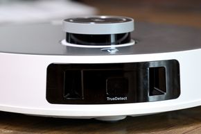 Tiếp theo, thành phần quan trọng thứ 2 trên robot chính là mảng đen ở phía trước. Đây là nơi chứa các cảm biến để phục vụ cho hệ thống Phát hiện vật cản TrueDetect 3D 3.0, giúp phát hiện và tránh được vật cản trong môi trường thiếu sáng, các vật cản có màu đen, phản chiếu, trong suốt (gương/kính). Ecovacs cho biết họ không sử dụng AI như cách đã ứng dụng cho các thế hệ máy trước đó, và nhờ vậy nó hoạt động ổn hơn ở các điều kiện nói trên.
