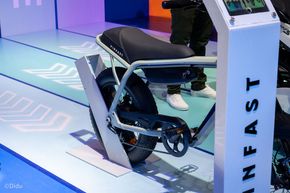 Bên cạnh xe hơi chúng ta còn có xe máy và lần đầu tiên VinFast ra mắt xe đạp điện tại Việt Nam. Mẫu xe đạp này là xe trợ lực, chúng ta vừa dùng chân đạp và motor điện sẽ hỗ trợ đẩy xe về phía trước. Đây là mẫu xe đơn giản, yên nhỏ, bánh to và để đi trong đô thị. Khác với các mẫu xe đạp mà VinFast ra mắt đầu năm nay tại Mỹ.