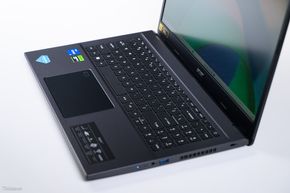 Là 1 laptop 15.6 inch, Acer Aspire 7 2023 sở hữu bàn phím full-size với phần phím số bên phải. Cụm numpad sẽ hỗ trợ cho anh em rất tốt khi cần nhập liệu chữ số, đặc biệt khi thao tác với các nội dung bảng tính. Bàn phím chiclet này có đèn nền, cho phép gõ thoải mái và dễ dàng hơn trong bóng tối. Ngay bên dưới là khu vực clickpad với màu sắc đậm hơn tổng thể, trên đó tích hợp đầu đọc vân tay. Cá nhân mình thấy việc Aspire 7 2023 có đầu đọc vân tay là khá hay. Nó sẽ giúp việc bảo mật trở nên tốt hơn do hạn chế nhập mật khẩu, ngoài ra đăng nhập hệ thống cũng nhanh gọn hơn hẳn.
