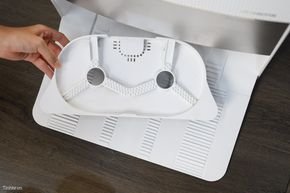 Trạm sạc của Dreame L20 Ultra có có khu vực riêng cho bình nước lau sàn đi kèm. Chỉ cần mở nắp bình và đặt vào đúng khi vực ống dẫn, nước lau sàn sẽ tự được pha loãng vào bình nước sạch theo liều lượng phù hợp mà chúng ta không phải đong đo.