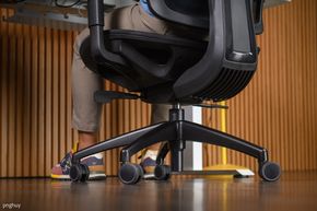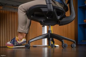 5 bánh xe ở phần chân đế trong quá trình mình ngồi và di chuyển qua lại một chút ở chỗ mình ngồi thấy khá êm ái, không phát ra những tiếng kêu "lạ". Điều mình không thích nhất ở một chiếc ghế hay một cái bàn đó là ngồi hoặc di chuyển mà nó phát ra tiếng kêu, cảm giác khó chịu, FortisChair không mang lại điều khó chịu đó.