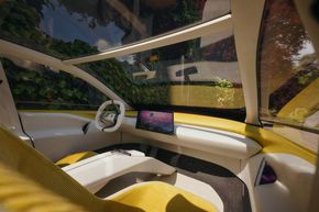 Bên trong nội thất, Vision Neue Klasse là cách mà BMW muốn cho chúng ta thấy về nền tảng iDrive thế hệ tiếp theo. Khoang lái của xe được làm đơn giản, nổi bật với màn hình nằm ở trung tâm bảng táp lô. Chưa dừng lại ở đó, phía cạnh dưới của kính chắn gió phía trước là Panoramic Vision - màn hình HUD cỡ lớn giúp hiển thị các nội dung cần thiết.