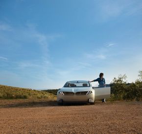 Xe hoàn toàn không có tay nắm cửa vật lý. Phía trên kính của cửa sổ, BMW trang bị một dải màn hình e ink. Màn hình này sẽ sáng lên khi bạn bước đến gần xe, đóng vai trò như một tay nắm cửa cảm ứng. Kính chiếu hậu cũng đã được thay thế bởi hệ thống camera, bởi vậy nên không cần tốn nhiều diện tích cho kính nữa, từ đó cũng tăng tính khí động học.