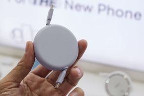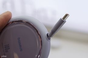 Sợi cáp có thiết kế dẹp, được bảo vệ trong một chiếc hộp nhựa, hình tròn. Ở trạng thái thu gọn, chỉ có 2 đầu USB-C ở bên ngoài.