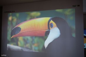 Tại triển lãm từ XGIMI cũng trình diễn trên một mảng tường với kích thước thu phóng lên đến 150-inch nhưng mình thấy hình ảnh vẫn sắc nét. XGIMI cũng đã đạt được một số giải thưởng lớn cho chiếc máy chiếu này.