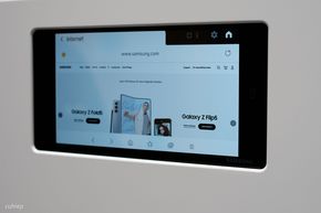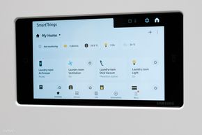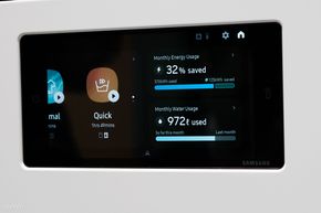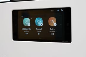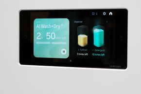 Máy giặt sấy Bespoke AI được trang bị màn hình thông minh ở bên trên để người dùng dễ dàng thao tác, kết nối với app, các thiết bị smarthome khác trong nhà và xem được các thông tin chi tiết lúc máy đang vận hành,...