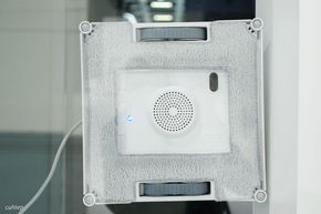 Khi hoạt động, robot sẽ tự động hút chặt vào kính, tự phun hoá chất và di chuyển vòng quanh tấm kính để làm sạch. Chúng ta có thể để robot tự động lau, hoặc điều khiển nó từ app.