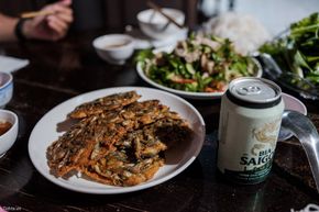 Sau một ngày di chuyển khá đuối, bọn mình kết thúc ngày bằng một mâm cơm thịnh soạn, đậm chất miền Tây sông nước với những món như cá lóc nướng trui, cá linh non chiên bột, gỏi sầu đâu và lươn um nước cốt dừa.
