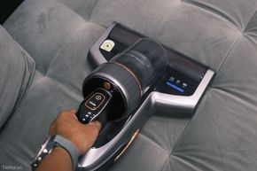 Điểm mà mình đánh giá cao nhất đối với máy đó là có cảm biến để tính toán lượng bụi đang còn tồn đọng dưới bề mặt, đồng thời hiển thị thông qua thanh đèn LED xanh - đỏ trên bàn lăn của máy. Những nơi như nệm hoặc sofa rất khó để chúng ta có thể nhìn thấy được bụi bằng mắt thường, thế nên cảm biến bụi sẽ là công cụ hỗ trợ nhiều để xác định xem khu vực đang vệ sinh đã sạch chưa.