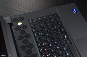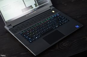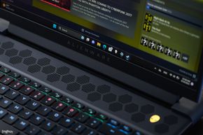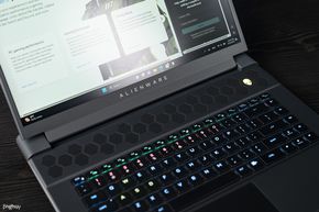 Bàn phím với hệ thống LED AlienFX sáng và khá trong, có option LED RGB từng phím và cả phím cơ Cherry MX Ultra Low Profile. Phiên bản của mình là RGB từng phím, có nhiều vùng của bàn phím anh em có thể điều chỉnh qua ứng dụng Alienware Command Center. Dải LED không chỉ có ở bàn phím mà phần hốc tản nhiệt phía sau và logo "Alien", tất cả đều có thể tinh chỉnh độc lập.