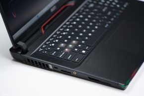 Quay lại với GE78 HX, thiết kế hầm hố và nhiều chi tiết gaming là đặc điểm dễ nhận thấy ở phân khúc dòng máy này, không riêng gì MSI. Do phải làm máy lớn để phục vụ cho việc tản nhiệt nên thường sẽ có nhiều không gian để chăm chút cho ngoại hình của máy.