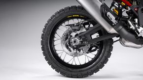 Đồng thời, Ducati cũng sử dụng loại vật liệu mới bền bỉ hơn cho cấu tạo bên trong phuộc để giảm ma sát khi hoạt động, từ đó đảm bảo tính ổn định khi vận hành. Lò xo phuộc trước của xe được điều chỉnh để mềm hơn một chút nhằm tăng sự thoải mái của người lái khi băng qua những cung đường xấu. Trong khi đó, phuộc sau của DesertX Rally cũng có hành trình tăng lên 20mm để đạt 240mm, độ cứng lò xo phuộc sau được chỉnh để cứng hơn để gia tăng tính ổn định của khu vực thân xe.